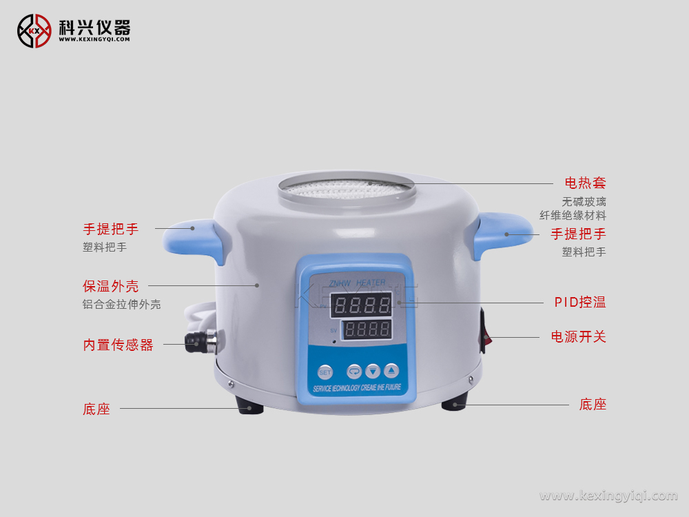 ZNHW型電熱套是用無堿玻璃纖維作絕緣材料,將Cr20Ni80合金絲簧裝置于其中,用硅酸鋁棉經真空定型的半球形保溫體保溫,外殼一次性注塑成型,上蓋采用靜電噴塑工藝,由于采用球形加熱,可使容器受熱面積達到60%以上。控溫采用計算機芯片做主控單元,采用多重數字濾波電路,模糊PID控制算法,具有測量精度高,沖溫小,單鍵輕觸操作,雙屏顯示,內、外熱電偶測溫,可控硅控制輸出,160-240V寬電壓電源,并有斷偶保護功能,具有升溫快、溫度高、操作簡便、經久耐用的特點,是做準確控溫加熱試驗的理想儀器。